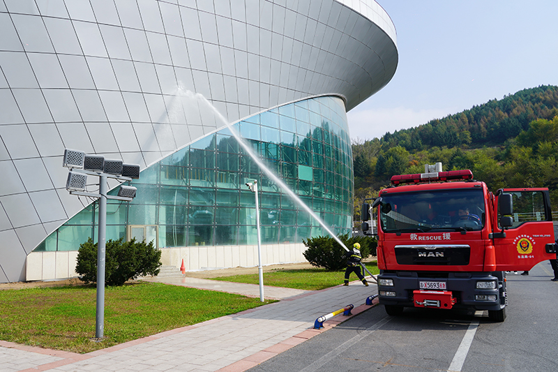 隨后,在侯云超宣布下,消防應急演練活動正式拉開帷幕。模擬消防應急指揮組接到火情報告后,立即啟動應急預案,引導全體人員迅速有序撤離火情地點,并組織應急處置工作人員配合消防工作人員開展高空滅火救援,并在安全地點由消防專家現場教學干粉滅火器材的使用方法,重點針對撲火過程中的注意事項和應急方法進行深入講解。?